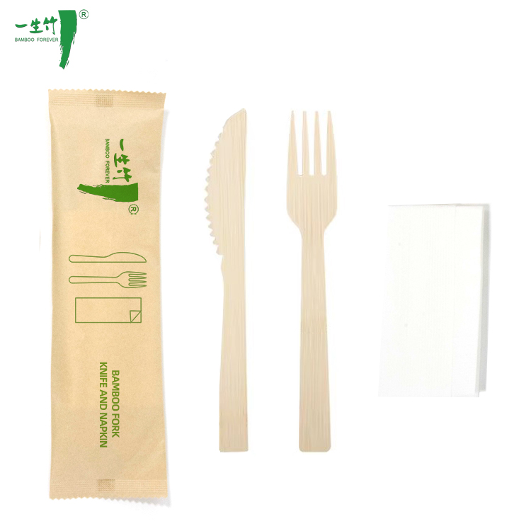 Coltelli, Forchette e Tovaglioli Monouso in Bambù con Confezione in Carta